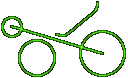 cyklisten befinner sig mellan fram- och bakhjulet med
